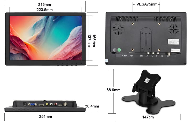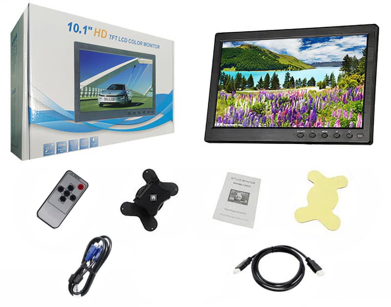 Proline PR-U101HDT - 10.1" монитор с сенсорными кнопками и возможностью подключения видеосигналов через AV, VGA и HDMI, предназначен для подключения видео воспроизводящих и записывающих устройств и другой аудио/видео техники. Корпус выполнен из пластика, а сам монитор устанавливается через крепление на металлическом кронштейне. Монитор имеет моно динамики для вывода аудио. Proline PR-E101T можно устанавливать в автомобиле, подключив его к бортовой аудио/видео системе, видеорегистратору или к видеокамерам, например переднего и заднего вида.
