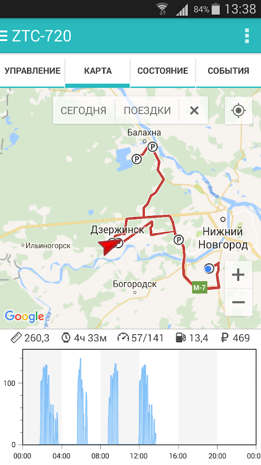 - Интегрированный GPS/ГЛОНАСС модуль определяет и отображает координаты автомобиля в режиме реального времени. Телематический сервис системы позволяет формировать статистические отчеты об эксплуатации автомобиля за любой промежуток времени с информацией о пробеге, времени в пути, средней и максимальной скорости, расходе топлива, затратах и т.д.