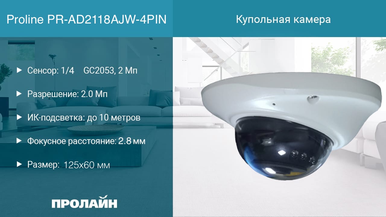 Proline PR-AD2118AJW-4PIN - это антивандальная влагозащищенная купольная AHD видеокамера c разрешением FullHD, предназначенная для использования как внутри помещений, так и на улице. Металлический корпус выполнен в соответствии с классом защиты IP67 (полная защита от пыли и водяных струй). Камера оснащена 2.0 Мп сенсором 1080P, выдающим изображение в формате высокого разрешения 1080p (1920x1080 пикселей). Миниатюрные размеры и универсальность в совокупности с высоким разрешением делают ее популярным выбором в построении систем видеонаблюдения для объектов частной или коммерческой собственности. Для подключения выведено 1 провод, 4PIN (п) для видео сигнала и питания камеры. Возможна работа при отрицательных температурах, что актуально при наших погодных условиях, грязь и дождь так же не являются проблемой.