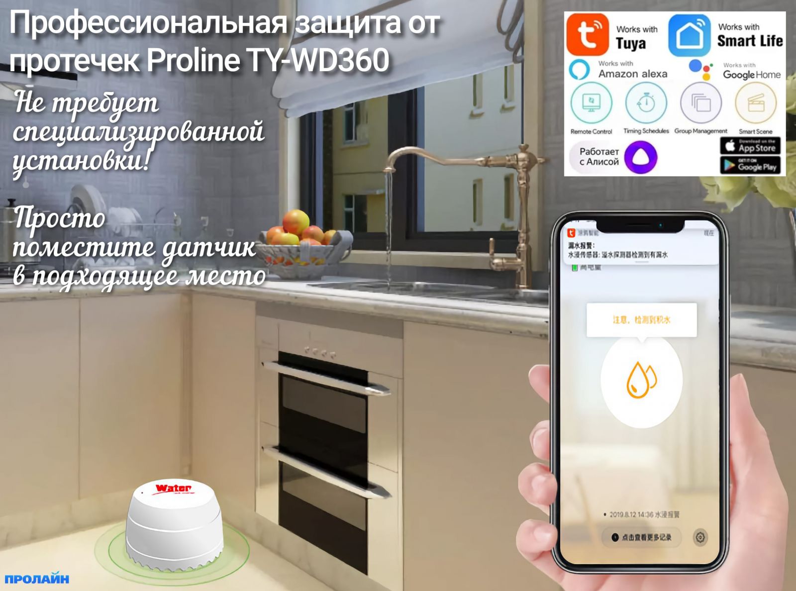 Умный Wi-Fi датчик утечки воды Tuya Smart Water Sensor TY-WD360 - это беспроводное устройство для установки в помещениях с потенциальным риском затопления. Считыватель способен функционировать как самостоятельное Wi-Fi устройство, иметь свою версию операционной системы и сопрягаться с основным приложением и устройством напрямую. Таким образом для управления устройством не нужно приобретать уличные экраны, центральные панели или делать в них монтажные и стыковочные отверстия и прокладывать кабельные линии, но всегда удобно и недорого прокладывать кабельный линии. Благодаря удобному приложению TuyaSmart доступен дляAndroid и AndroidИ так, iOS сопряжение происходит быстро и не требует дополнительных технических знаний, оно полностью русифицировано и имеет простой, понятный и дружелюбный интерфейс. В случае утечки воды или газа устройство отправит на ваш смартфон тревожное сообщение. В памяти приложения сохраняется вся история и история игрового события с подробным указанием места, времени, места и даты события. Также прибор может работать в составе системы «умный дом» в связке с другими функциональными компонентами. Настроить систему можно так, что при срабатывании тревожной тревоги или перестрелке будет включаться сирена, отключаться холодильник, розетки, включения телефонов, бытовой техники, бытовые приборы, провода и так далее.