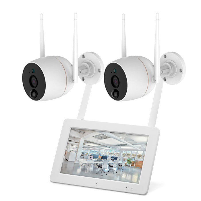 Сенсорный экран сетевого регистратора позволяет интуитивно настроить все параметры видеонаблюдения. Меню содержит только необходимые установки. Все компоненты комплекта уже связаны между собой. Видео записывается на MicroSD/TF карту объёмом до 128 Гб, время для записи вы можете установить сами через настройки системы, а также вести наблюдение с помощью смартфона. Видеокамеры ведут съемку в разрешении до 1920x1080 пикс, обеспечивая высокое качество изображения, они оборудованы датчиком движения PIR, а в условиях слабой освещённости могут снимать на расстоянии до 9 метров. Вход USB 2.0 служит для обновления ПО, а встроенный микрофон и динамики дают возможность пользоваться функцией интеркома.