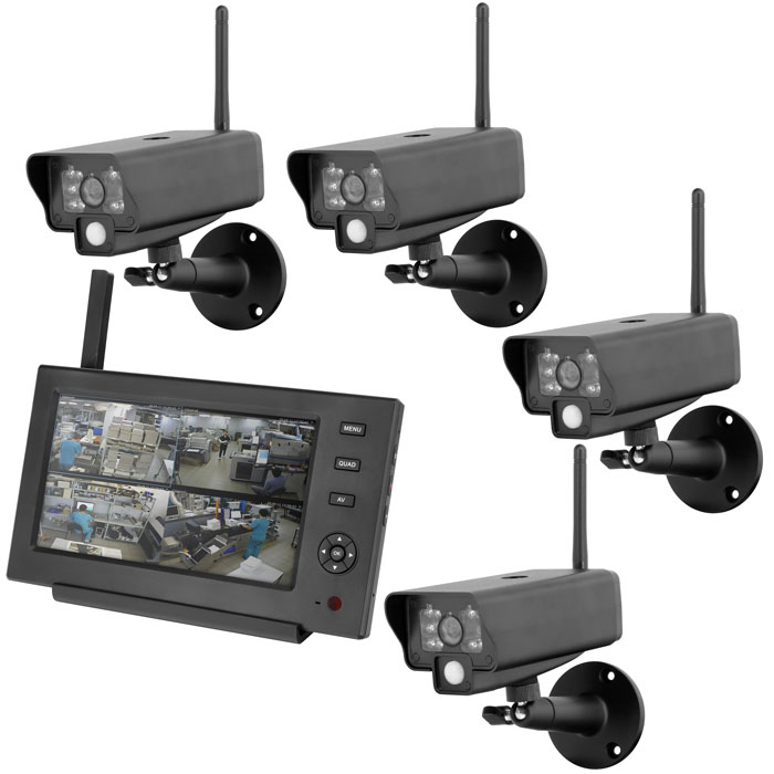 Система видеонаблюдения состоит из 4-х цветных уличных беспроводных камер с ИК-подсветкой до 5 м и распознованием движения до 10 м (по PIR датчику), устройство записи с приемником и монитором в одном корпусе, комплектом антенн и блоков питания, дает возможность построить систему наблюдения с достаточным количеством видеокамер и является полностью готовой к использованию системой. Просмотр видео можно осуществлять дистанционно на устройствах под управлением Android и iOS, для этого необходимо подключить монитор-регистратор к специальной панели с разъемом под сетевой кабель RJ-45. Для удобства также имеется возможность подключения 7" монитора с функцией записи видео, к внешнему монитору через AV кабель. Все видеоматериалы сохраняются на SD карту объемом до 32 Гб (в комплект не входит), либо на HDD диск подключаемый через USB 2.0.