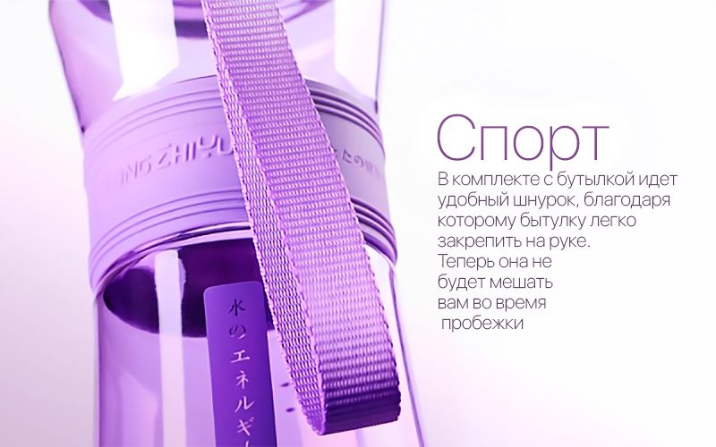 Удобный шнурок в комплекте, с помощью которого бутылку можно будет повесить на руку.