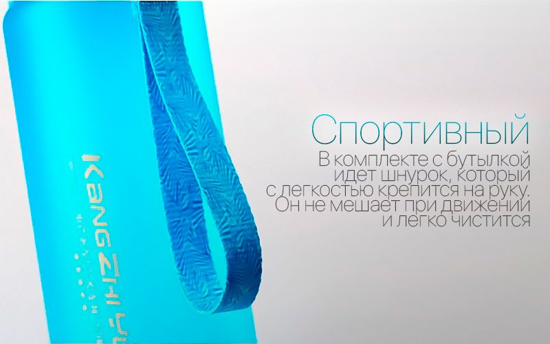 Удобный шнурок в комплекте, с помощью которого бутылку можно будет повесить на руку.