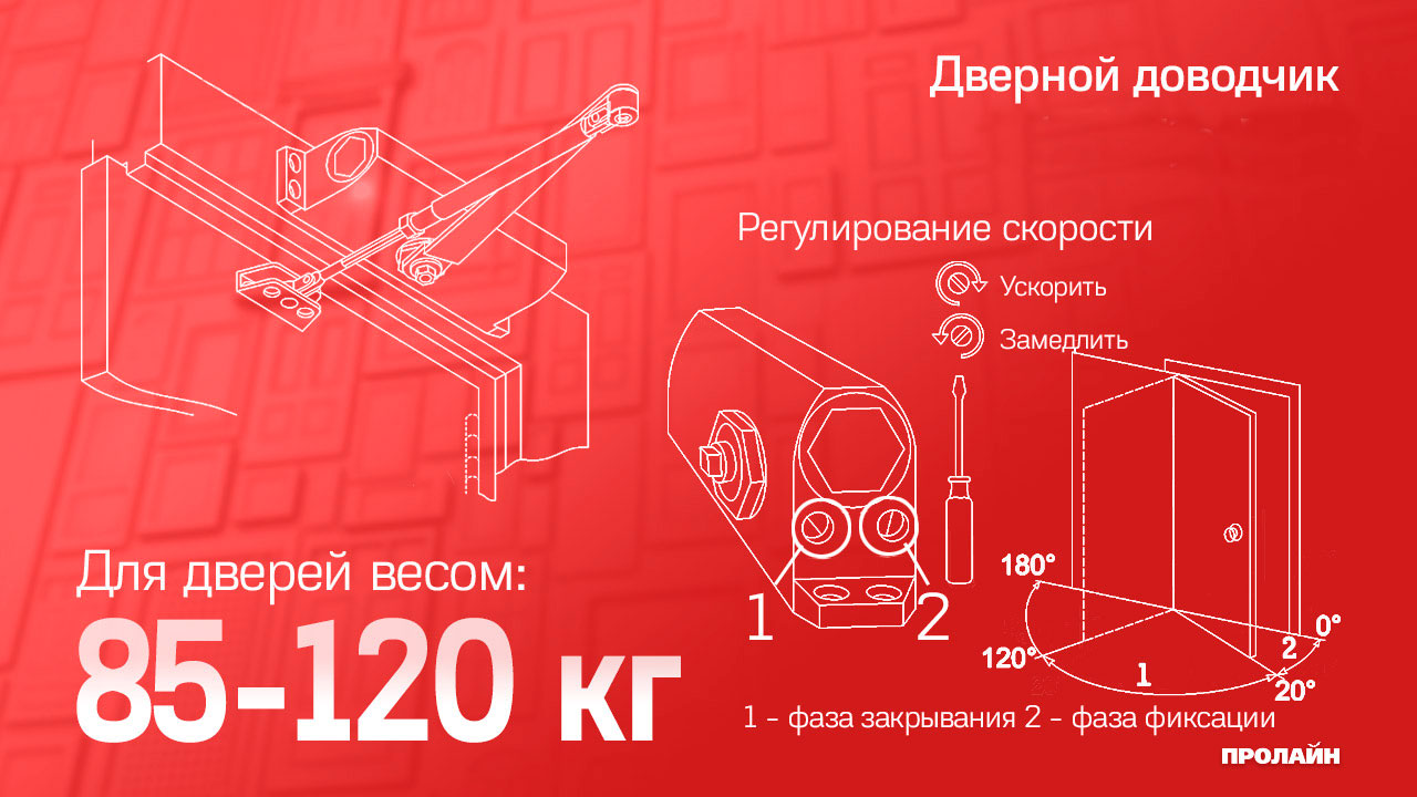 • Скорость закрытия: 2-х скоростной, регулируемая