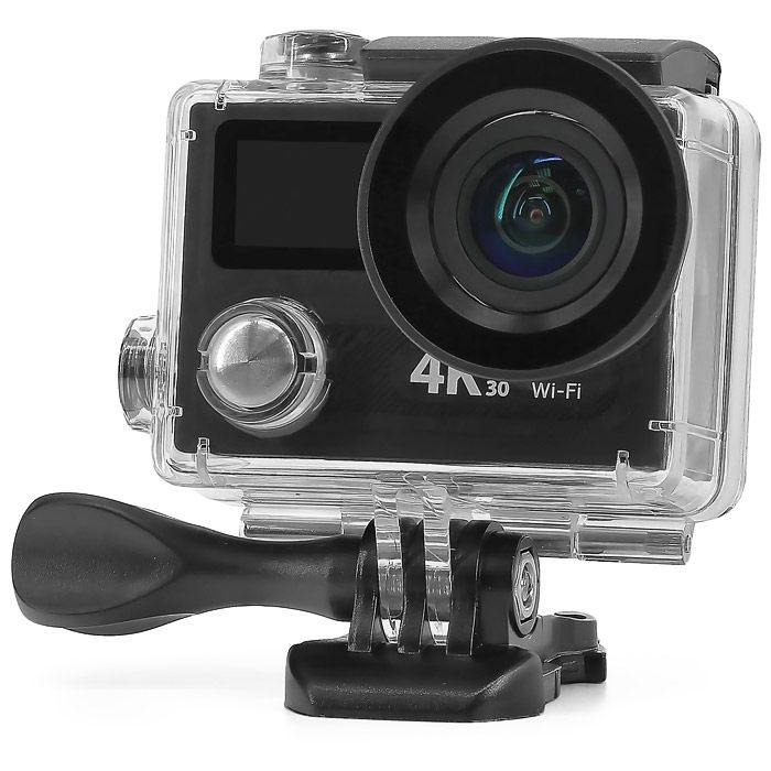 EKEN H8 Pro Ultra HD 4K - это высококачественная экшн-камера с высоким разрешением съемки 4К (4096x2160) от китайской компании EKEN. Она оснащена чипсетом Ambarella A12S75 и сенсором Sony IMX078 Sensor. Меню камеры поддерживает большое количество языков. Экшн камера EKEN H8 Pro Ultra HD 4K оснащена 2" экраном и 12 Мп камерой с углом обзора 170°. Поставляется в комплекте с несколькими различными переходниками и крепежными устройствами. С данной камерой в комплекте идет противоударный аквабокс, с которым можно погружаться в воду и снимать на глубине до 30 метров. Запись производится на micro SD карту (вы может воспользоваться картой до 32 Гб).