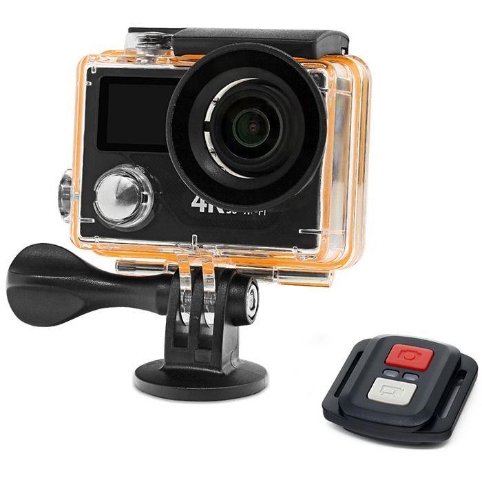 EKEN H8Plus Ultra HD 4K - это недорогая экшн камера с высоким разрешением съемки 4К (4096x2160) от китайской компании EKEN. Камера оснащена чипсетом Ambarella A12S75 и сенсором Sony IMX117 Sensor. Меню камеры полностью на русском языке. Экшн камера EKEN H8 Plus оснащена 2" экраном и 12.4 Мп сенсором с углом обзора 170°. Камера поставляется в комплекте с несколькими различными переходниками и крепежными устройствами. С данной камерой в комплекте идет противоударный аквабокс, с которым Вы сможете погружаться в воду и снимать на глубине до 30 метров. Запись производится на microSD карту (вы может воспользоваться картой до 32 Гб).