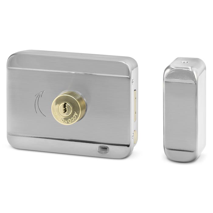 Устройство имеет электронное и ручное управление, отличается беззвучностью и увеличенным размером ригеля. Напряжение питания DC 12 вольт, потребление в режиме работы составляет 320 миллиампер. Ручное открытие можно произвести с обеих сторон ключами (связка из 5 ключей входит в комплекте). Механизм отличается большой износоустойчивостью и протестирован на 3 миллиона циклов. Функция оповещения об ошибке срабатывает если ригель находится не на своем месте и издает звуковой сигнал в течении 10 секунд.