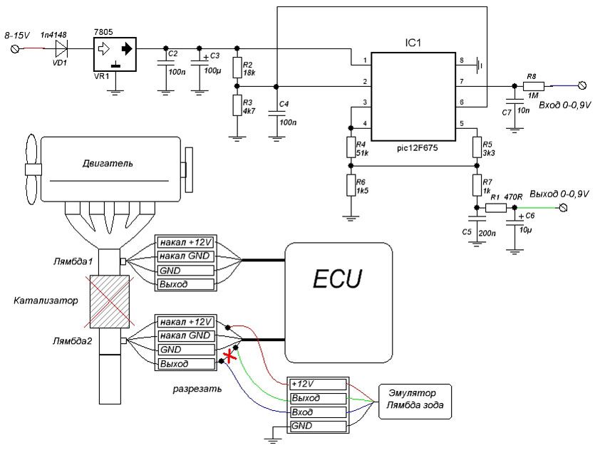 - Данный модуль устанавливается в разрыв цепи второго лямбда зонда
