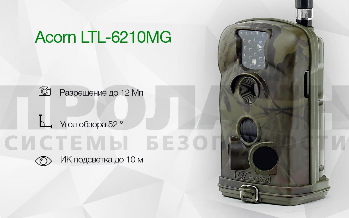 LTL-6210MG делает высококачественные снимки или записывает видеоролики, в том числе и ночью благодаря встроенной ИК-подсветке в невидимом спектре. Интервалы срабатывания камеры при постоянном движении в зоне наблюдения задаются заранее.
