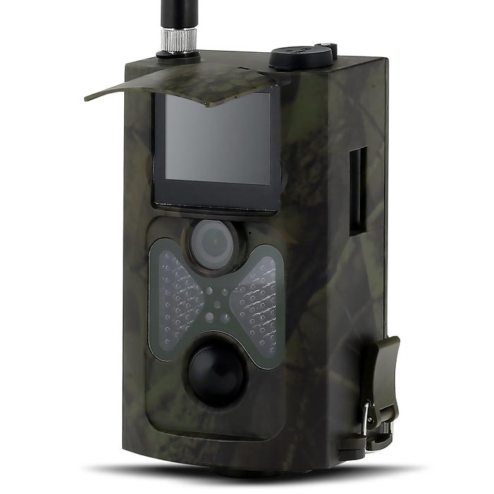 Влагозащищенный корпус камуфлированной окраской позволяет вешать камеру даже в лесу и оставлять там на длительное время, так как в режиме ожидания она может работать до 6 месяцев. Для крепления камеры предусмотрен специальный ремень и дополнительно защитный бокс с более гибкой возможностью крепежа под разным углом. Питание осуществляется 8 батарейками размера АА. Фото или видеозапись производится на карточку MicroSD/HC (поддержка до 32 Гб) и отправляется вам на телефон в виде MMS или на электронную почту через GPRS. Управление и настройка камеры осуществляется пультом дистанционного управления, входящим в комплект.