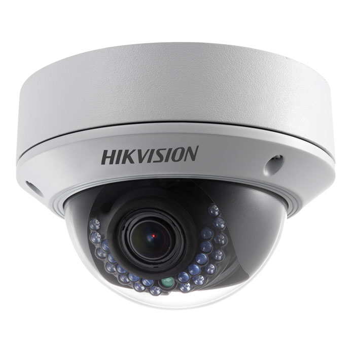 Наружная IP-видеокамера от HIKVISION заключена в купольный, выполненный из прочных лексана и силумина, вандалозащищенный корпус, соответствующий высокому стандарту защиты от попадания внутрь устройства влаги и пыли IP66. Под прозрачным куполом, прикрепленным к основанию небольшим тросиком, располагается мегапиксельный объектив с фокусным расстоянием 2.7-12 мм и значением диафрагменного числа F, равным 1.4. Из интерфейсов у DS-2CD2732F присутствуют: стандартный сетевой разъем RJ-45 и разъем для подключения 12-вольтового источника питания. Порт RJ-45 поддерживает функцию питания по сети Ethernet (PoE), устраняющую необходимость в использовании обычного БП, что облегчает процесс монтажа и сокращает затраты на закупку и прокладку силовых кабелей к месту инсталляции.