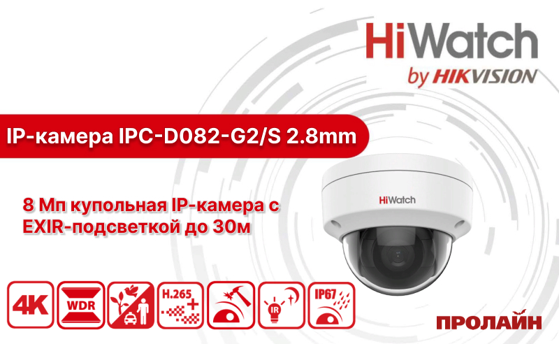 Купольная IP-камера HiWatch IPC-D082-G2/S 2.8mm