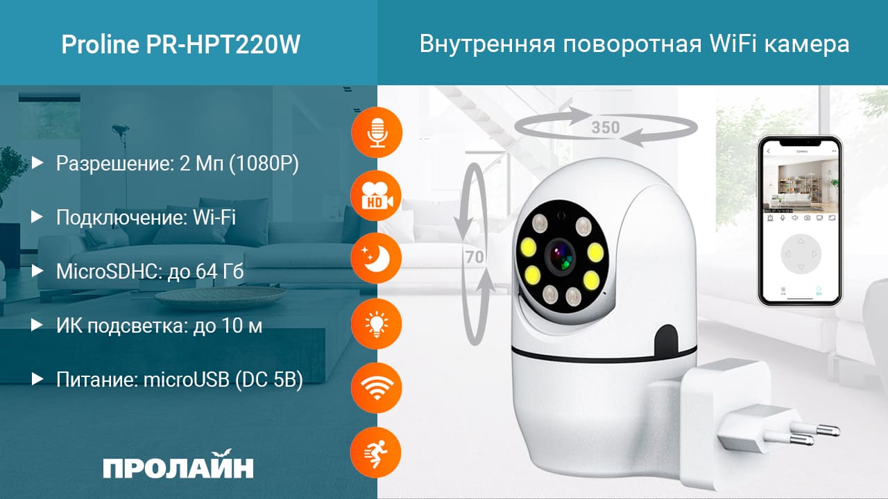 Внутренняя поворотная WiFi камера Proline PR-HPT220W