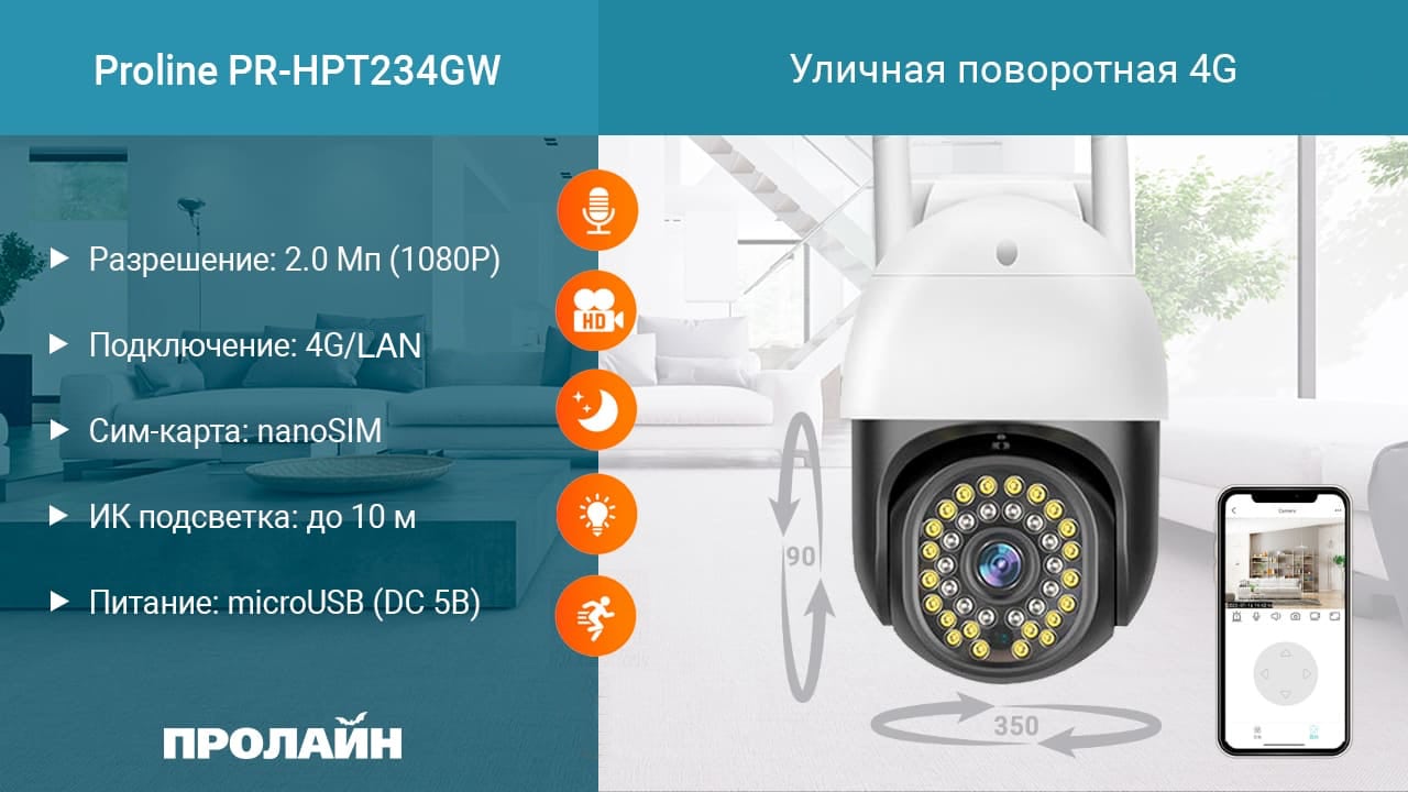Уличная поворотная 4G камера Proline PR-HPT234GW