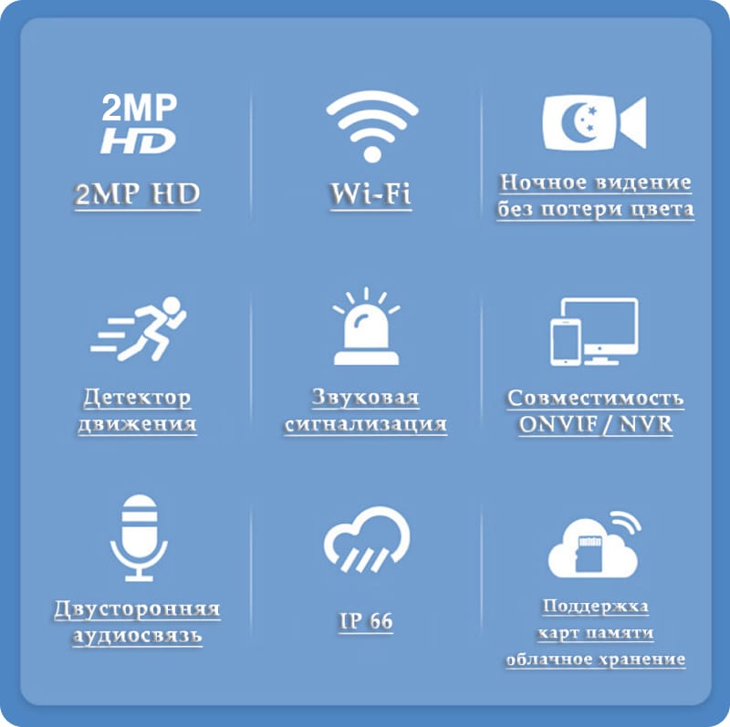 Модель поддерживает разрешение 2560 × 1440 пикселей. Благодаря поддержке различных приложений на большинстве девайсов (Android, Apple, планшет, ПК и др.) доступен удаленный просмотр с нескольких устройств в режиме реального времени, а также функции управления камерой. Устройство соответствует стандарту защиты IP67, что позволяет полностью защитить камеру от попадания внутрь влаги и пыли. Система безопасности включает в себя функции обнаружения движения, звукового сигнала тревоги, двусторонней аудиосвязи, а также возможность сохранения записи на карту памяти или на облако.