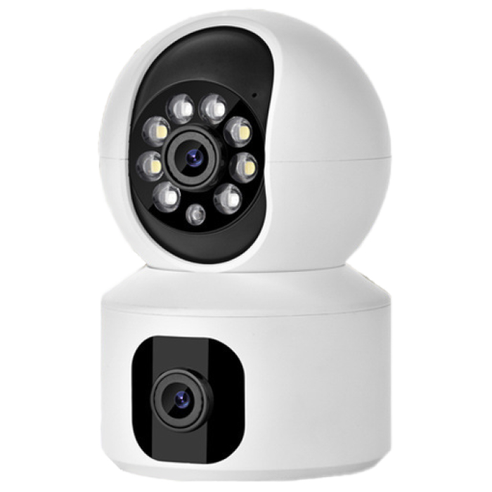 Модель поддерживает разрешение 1920 × 1080 пикселей. Благодаря поддержке различных приложений на большинстве девайсов (V380 PRO Android, Apple, планшет, ПК и др.) доступен удаленный просмотр с нескольких устройств в режиме реального времени, а также функции управления камерой. Устройство оснащено двумя объективами, благодаря чему можно фиксировать события на объекте в несколько сторон одновременно, посредством одного устройства вместо двух. Система безопасности включает в себя функции обнаружения движения, звукового сигнала тревоги, двусторонней аудиосвязи, а также возможность сохранения записи на карту памяти или на облако.