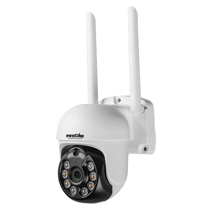 Уличная, влагозащищенная, поворотная камера высокого разрешения 6.0 Мп (3200×1800) видеонаблюдения Proline PR-HPT615TY с проводным подключением через LAN или с беспроводным подключением через WiFi на частоте 2.4 ГГц и 5 ГГц, позволяет вести наблюдение и запись на карту памяти формата microSD до 128 Гб (в комплект не входит). Видеокамера имеет поворотный механизм, блягодаря которому возможно удаленное управление поворотом камеры по горизонтали на 350° и наклоном по вертикали на 90°. Это обеспечивает расширенную зону наблюдения за объектом. Влагозащищенный корпус видеокамеры имеет защиту по станадарту IP66 и может быть установлена на улице при температуре до -25°. Видеокамера оснащена сенсором 1/2.7" GalaxyCore GC2033 и довольно производительным микропроцессором Goke GK7102, обеспечивающие вместе трансляцию и запись видео с разрешением FullHD c компрессией Smart H.265. Для работы в темное время суток Proline PR-HPT615TY использует 2 режима работы: инфракрасная подсветка с 4 IR Array LED и светодиодная подсветка с 4 белыми Array LED широкоугольными диодами нового поколения с дальностью до 25 метров. Камера обладает интеллектуальной системой слежения за движением человека. При возникновении движения в обзоре камеры, она начинает слежение, поворачиваясь по горизонтали и вертикали, и преследуя объект. Это позволяет получать более информативную картинку происходящего на объекте слежения и не требует установки дополнительных видеокамер. Данная уличная поворотная WiFi видеокамера будет полезна для слежения за дачным участко, домом, стоянкой и другими прочими хозяйственными имуществами владельца, находящиеся на улице. Благодаря двусторонней аудиосвязи можно контролировать и переговариваться с посетителями.