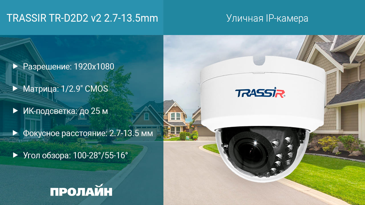 Уличная IP-камера TRASSIR TR-D2D2 v2 2.7-13.5mm