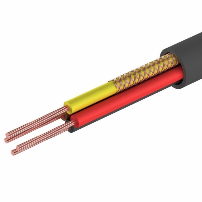 Кабель выполнен в светостабилизированной полиэтиленовой (PE) оболочке, с четырьмя медными жилами диаметром 0,12 мм с изоляцией из поливинилхлорида (PVC) и внешнего проводника из металлической проволоки в виде оплетки. Наружный диаметр изделия составляет 4.5 мм, общая длина бухты 200 м.