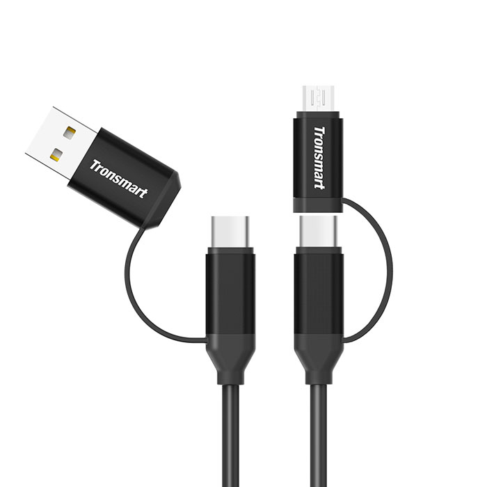 Кабель 4 в 1 Tronsmart C4N1 представляет собой универсальное решение для владельцев современных смартфонов и гаджетов с набирающим популярность разъемом USB Type-C. Новый формат обеспечивает более быструю передачу данных между устройствами, обладает большей пропускной способностью и удобным форм-фактором в виде симметричного разъема. Однако еще не вся актуальная техника оснащена таким форматом, и что делать со старыми устройствами с поддержкой Micro-USB и USB-A, если вам вдруг необходимо подключить их к разъему Type-С? Именно для таких нужд компания Tronsmart представляет свой новый универсальный кабель.