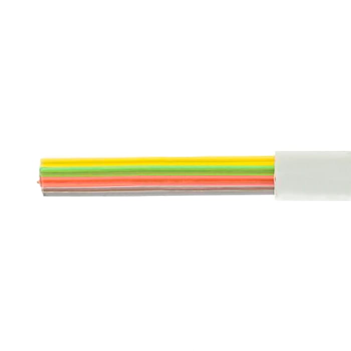 Кабель телефонный плоский с параллельными медными многопроволочными токопроводящими жилами, с изоляцией из полиэтилена, изоляция жил имеет цветовую идентификацию, оболочка кабеля сплошная из ПВХ пластика.