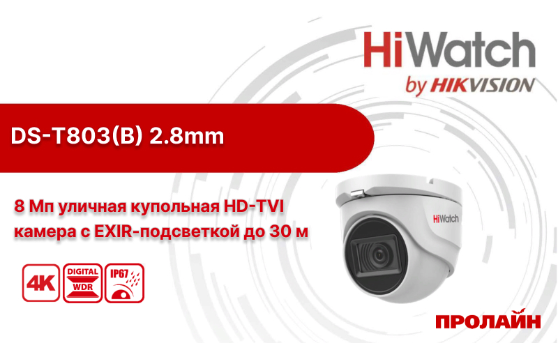 Уличная HD-TVI камера HiWatch DS-T803(B) 2.8mm - выполнена в купольном корпусе и оснащена всеми необходимыми атрибутами для ведения эффективного внутреннего и наружного видеонаблюдения. Класс защиты устройства IP67 (защита от попадания пыли, временное погружение в воду на глубину до метра. Одним из преимуществ видеокамеры является широкий диапазон рабочих температур от -40 до +60 °С. Интеллектуальная EXIR-подсветка позволяет вести съемку ночью в условиях низкого освещения. Широкий динамический диапазон WDR (Wide Dynamic Range) осуществляет цифровую обработку изображения, повышая уровни в темных зонах сцены и, наоборот, подрезая уровни на сильно освещенных участках. Благодаря широкоугольному объективу и высокому разрешению камера может использоваться в составе систем видеонаблюдения парковок, офисных зданий, различных социальных объектов или частного жилья.
