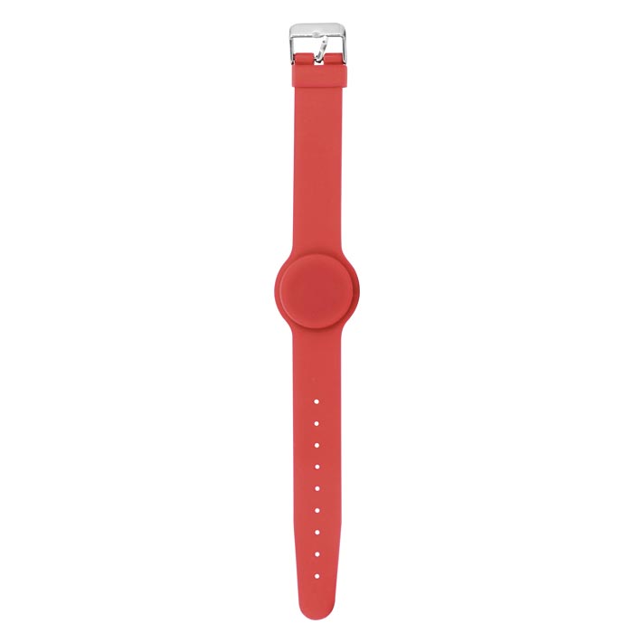 Силиконовый браслет EM-Marine G009R с металлической застежкой. Его корпус защищен от попадания пыли и влаги, что позволяет применять браслет спортзалах и водных аттракционах. Застежка позволяет регулировать длину ремешка для надёжной фиксации как на руке взрослого, так и ребенка. Гибкий и приятный на ощупь, он не будет отвлекать на себя внимание.