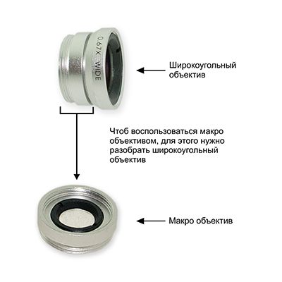 Для того чтобы воспользоваться макро объективом, для этого нужно разобрать широкоугольный объектив