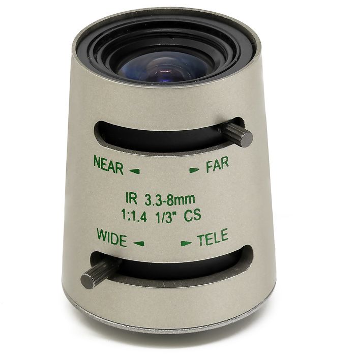 RV03308D.IR - варифокальный объектив для камер видеонаблюдения имеет схожую конструкцию и принцип работы, как у объектива для фотоаппарата (например, Canon или Nikon), представляет собой оптическую систему из линз и зеркал. Благодаря использованию такого объектива, Вы сможете улучшить качество получаемого изображения до нескольких раз, а также увеличить угол обзора.