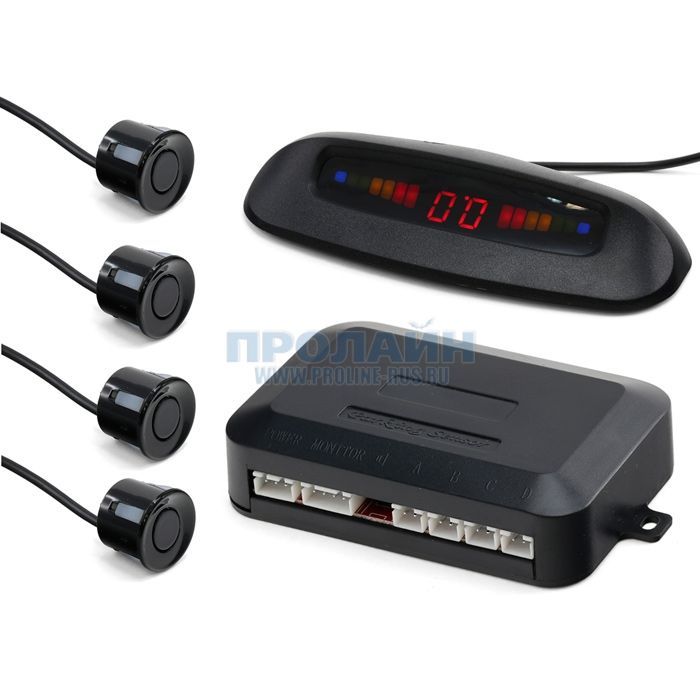 Индикатор представляет собой блок с двумя световыми шкалами, цифровым дисплеем и бипером, подающими водителю световой и звуковой сигналы о наличии препятствия. По мере приближения к препятствию на шкалах загораются два зеленых, два оранжевых и два красных сектора. Одна световая шкала отражает работу датчиков с левой стороны, другая - с правой. Цифровое табло отражает расстояние до ближайшего препятствия. Четыре ультразвуковых врезных датчика обеспечивают точное определение расстояния до препятствия. Система подает звуковой сигнал. Бипер, издающий 3 типа звукового сигнала, предупреждает водителя о близости препятствия.