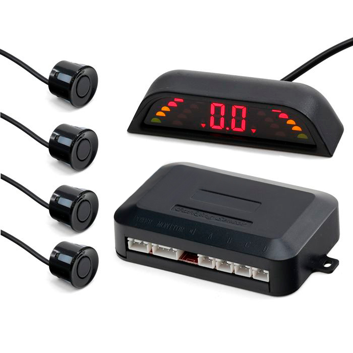 Индикатор представляет собой блок с двумя световыми шкалами, цифровым дисплеем и бипером, подающими водителю световой и звуковой сигналы о наличии препятствия. По мере приближения к препятствию на шкалах загораются два зеленых, два оранжевых и два красных сектора. Одна световая шкала отражает работу датчиков с левой стороны, другая - с правой. Цифровое табло отражает расстояние до ближайшего препятствия. Четыре ультразвуковых врезных датчика обеспечивают точное определение расстояния до препятствия. Система подает звуковой сигнал. Бипер, издающий 3 типа звукового сигнала, предупреждает водителя о близости препятствия.
