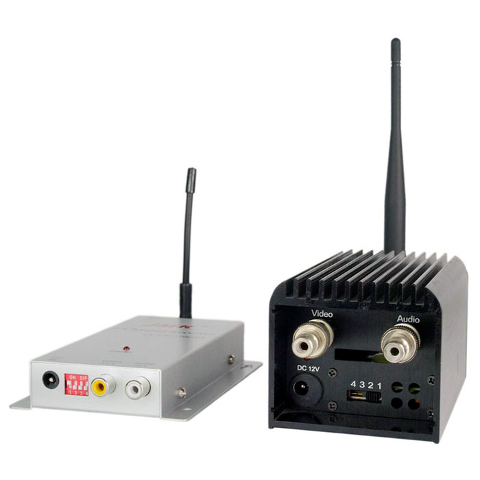 К передатчику может быть подключена любая проводная камера, а так же DVD, видеомагнитофон, компьюер или любой дргой прибор, имеющий НЧ аудио/видео выход с разъёмами типа "тюльпан". Таким образом, получаем комплект для передачи аудио и видеосигнала на расстояние без использования проводов.