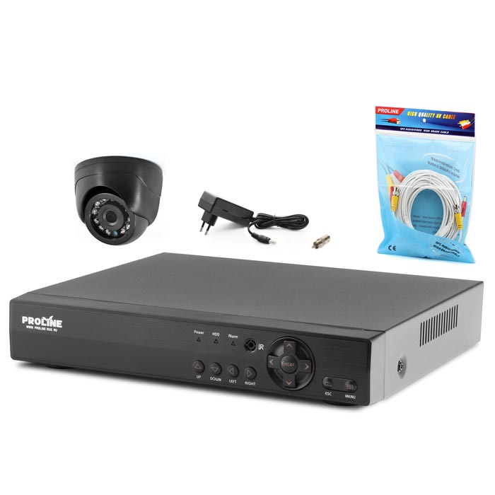 - Готовый комплект видеонаблюдения состоящий из регистратора Proline PR-X2104NLM1, камеры Proline AHD-D1024C2, 20 метрового кабеля для видеонаблюдения Proline PR-BNCDC20W, переходника BNC(м)/RCA(п) и блока питания 1220/24.