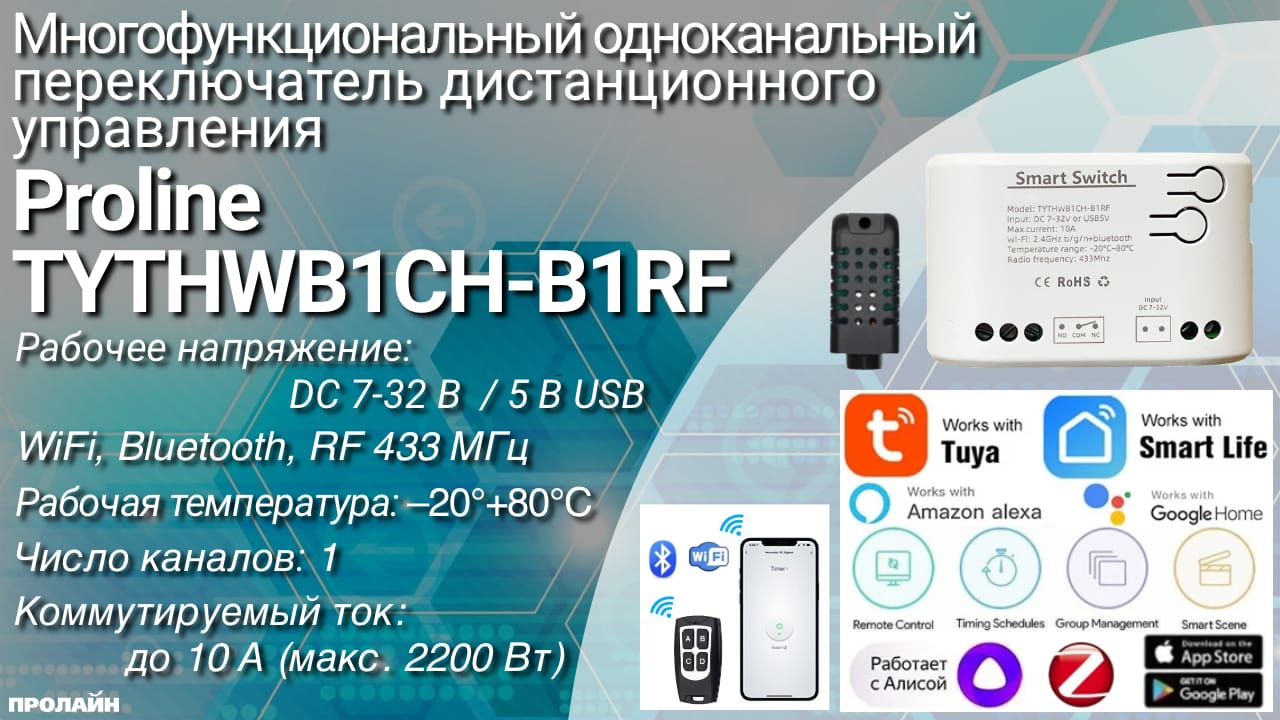 Радиореле TYTHWB1CH-B1RF с датчиком температуры 1Ch предлагает три режима работы: WiFi, Bluetooth и RF. Это устройство может быть использовано в различных областях, таких как системы безопасности, контроль доступа, автомобильные охранные системы и другие. Удобное в использовании устройство не требует профессиональной установки, что делает его доступным для широкого круга пользователей.
