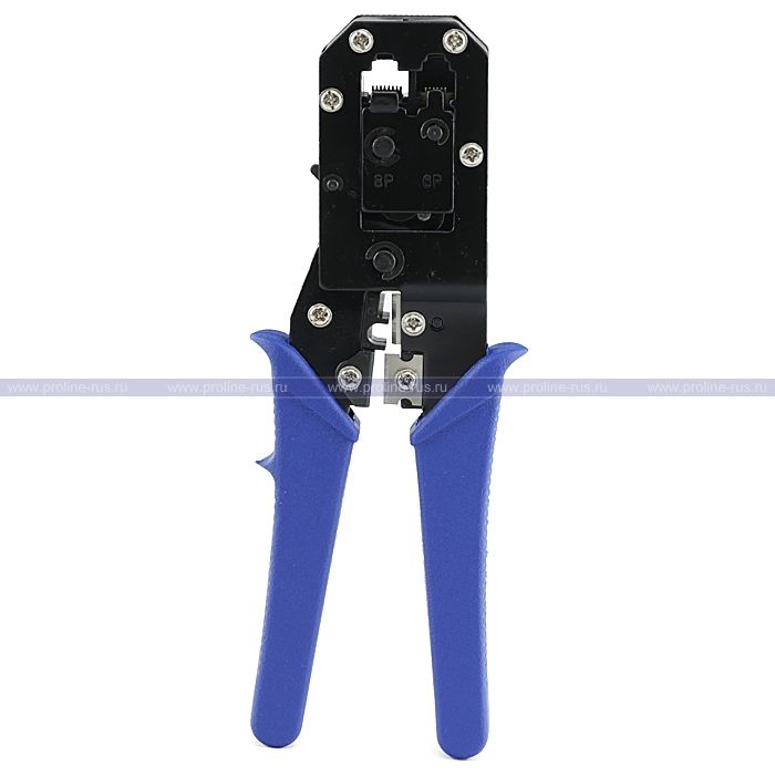 Обжимные клещи предназначены для резки, зачистки и обжима витой пары разъемами RJ-45, RJ-12, RJ-11. Храповый механизм.