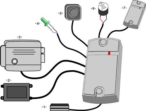 - Перемычка для выбора типа замка: электромагнитный, электромеханический