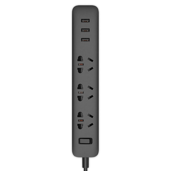 Xiaomi Mi Power Strip 3 Sockets/3 USB - универсальный, технологичный сетевой фильтр, на небольшой площади которого располагаются 3 универсальные розетки, и 3 USB-порта. Длина провода составляет 1.8 метра, а общий вес всего 300 грамм, благодаря этому он подойдет для путешественников. Одна розетка Mi Power Strip 3 рассчитана на ток до 10 А при напряжении до 250 В, что позволяет подключать приборы мощностью до 2.5 киловатт. Сетевой фильтр также имеет кнопку включения/выключения со встроенным световым индикатором. USB-порты позволяют напрямую заряжать гаджеты без использования дополнительного адаптера питания, что экономит место для других электроприборов. Каждый USB-порт способен вывести ток до 2.1 ампера, можно заряжать оборудование с функцией быстрой зарядки. Все порты оборудованы чипом, определяющим подключаемое устройство, поэтому выдаваемая сила тока не превысит допустимое значение. Коэффициент конверсии (КПД) Xiaomi Mi Power Strip 3 равен 82%, что делает устройство выигрышным при зарядке большого количества оборудования.