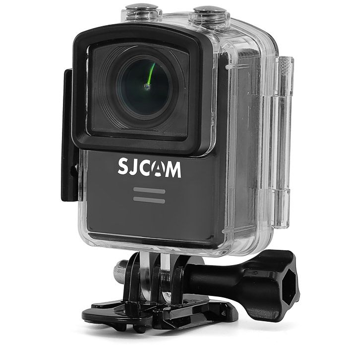 Экшн камера SJCAM M20 - одна из последних разработок от компании SJCAM, миниатюрная и легкая камера может снимать с разрешением 4К при 24 к/с. Особенностью данной камеры является оригинальный дизайн, при котором камера прямоугольной формы имеет вертикальное расположение. Под объективом расположены 2 светодиода, оповещающих (включение записи и подключения Wi-Fi). Камера оснащена 16 Мп объективом и сенсором от Sony (Sony IMX206).