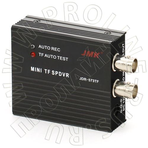 JMK JDR-573TF – одноканальный цифровой миниатюрный видеорегистратор использующий современную технологию аппаратных средств ARM + DSP, позволяющие с максимальной скоростью и качеством записывать видео для последующего воспроизведения. Сжатие видеопотока осуществляется со скоростью до 2-х к\с в формате JPG и с разрешение 352x288 (CIF). Данное устройство цифровой записи позволяет просматривать ранее записанное видео. JMK JDR-573TF имеет функцию отображение даты и времени (OSD) в реальном времени, а так же её настройку, причем при отключении питания настройки сохраняются. Видеорегистратор в основном применяется в небольших системах видеонаблюдения, системах видеодомофонии при использовании одного источника видеоизображения. Благодаря функции записи по детектору движения значительно экономится место на карте памяти, а так же позволяет сохранять видеоданные только при возникновении движения в кадре, что избавит Вас от просмотра не нужной видеоинформации.