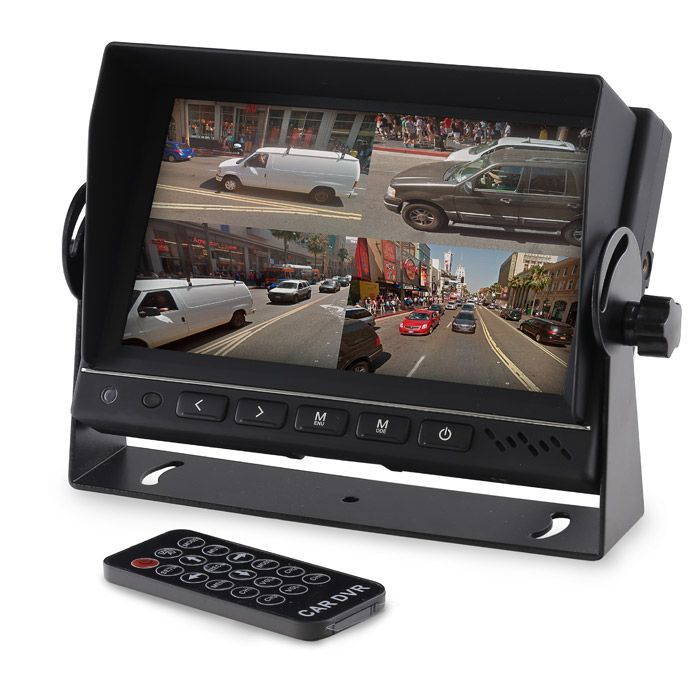 Монитор поддерживает запись на карты памяти microSD объемом до 32 Гб. Одновременно можно записывать до 4-х камер. Запись сохраняется в формате AVI. Для одного канала камеры отдельный файл. Режимы отображения могут переключатся автоматически в зависимости от срабатывания триггеров событий, в виде переключения световых сигналов. Питание подключается по линии от 12 В до 24В. Поддерживаются камеры c форматом CVBS, разрешение VGA - 640x480, HD - 1280x720, FullHD - 1080P.