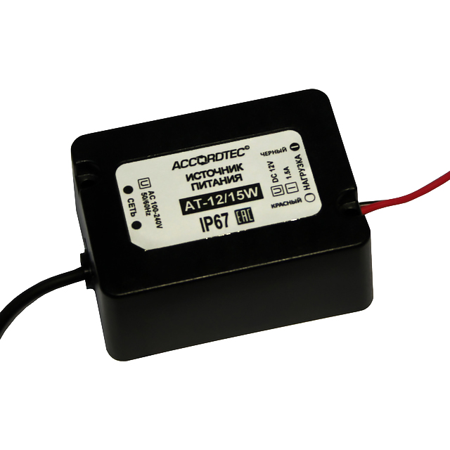 AT-12/15W представляет собой влагозащищенный блок питания и предназначен для электропитания устройств и приборов охранно-пожарной сигнализации, систем видеонаблюдения и связи, контроля доступа выпрямленным стабилизированным напряжением 12 В и током не более 1.5 А.