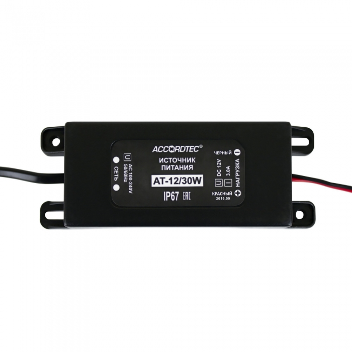 AT-12/30W представляет собой влагозащищенный блок питания и предназначен для электропитания устройств и приборов охранно-пожарной сигнализации, систем видеонаблюдения и связи, контроля доступа выпрямленным стабилизированным напряжением 12 В и током не более 3.0 А.