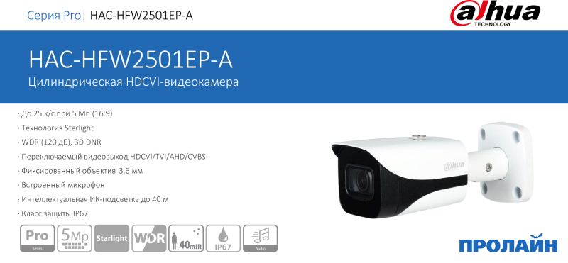 Откройте для себя видеонаблюдение в разрешении 5 Мп. Благодаря стандарту HDCVI, вам не придется менять существующую кабельную инфраструктуру. Серия HDCVI-видеокамер Pro с разрешением 5 Мп отличается высоким качеством изображения, компактной конструкцией и доступной ценой. Серия включает в себя модели с фиксированным и моторизованным вариофокальным объективом, широким динамическим диапазоном (WDR 120 дБ) многоязычным экранным меню и переключаемым видеовыходом HD/SD. Благодаря конструктивному разнообразию и выгодному соотношению цены и функциональности данная серия идеально подходит для объектов малого среднего бизнеса.