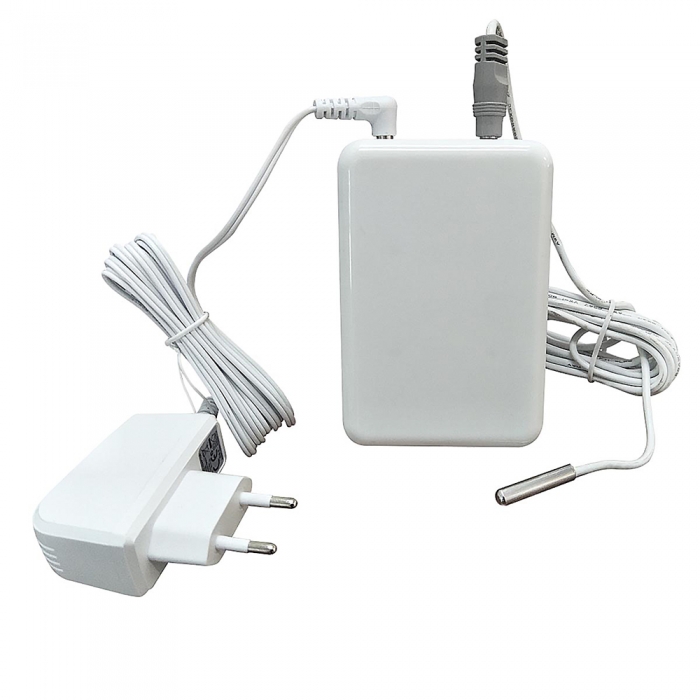 В комплекте с SimPal-D310 идет проводной выносной датчик температуры типа DS18B20, который можно установить в помещении для контроля изменения в нем температуры воздуха в пределах от -30 до +100 градусов. При подключении и настройки этого датчика температуры и превышении заданного порогового значения, происходит уведомление пользователя в виде SMS сообщения. С помощью SMS команд можно управлять и настраивать режимы работы, в том числе и по расписанию. Таким образом можно выставить расписание включения или выключения подключенного к устройству оборудования. Для поддержания заданной температуры, устройство может автоматически управлять включением или отключение системы отопления или кондиционирования. Отправив SMS команду, можно в любой момент проверить текущую температуру и уровень приема GSM сигнала. Подключение в охранную зону проводного датчика, расширяет применение устройства и позволяет получать тревожные SMS уведомления при срабатывании, например, датчика утечки воды или датчика открытия двери с NO/NC типами контактов или PIR датчика движения.