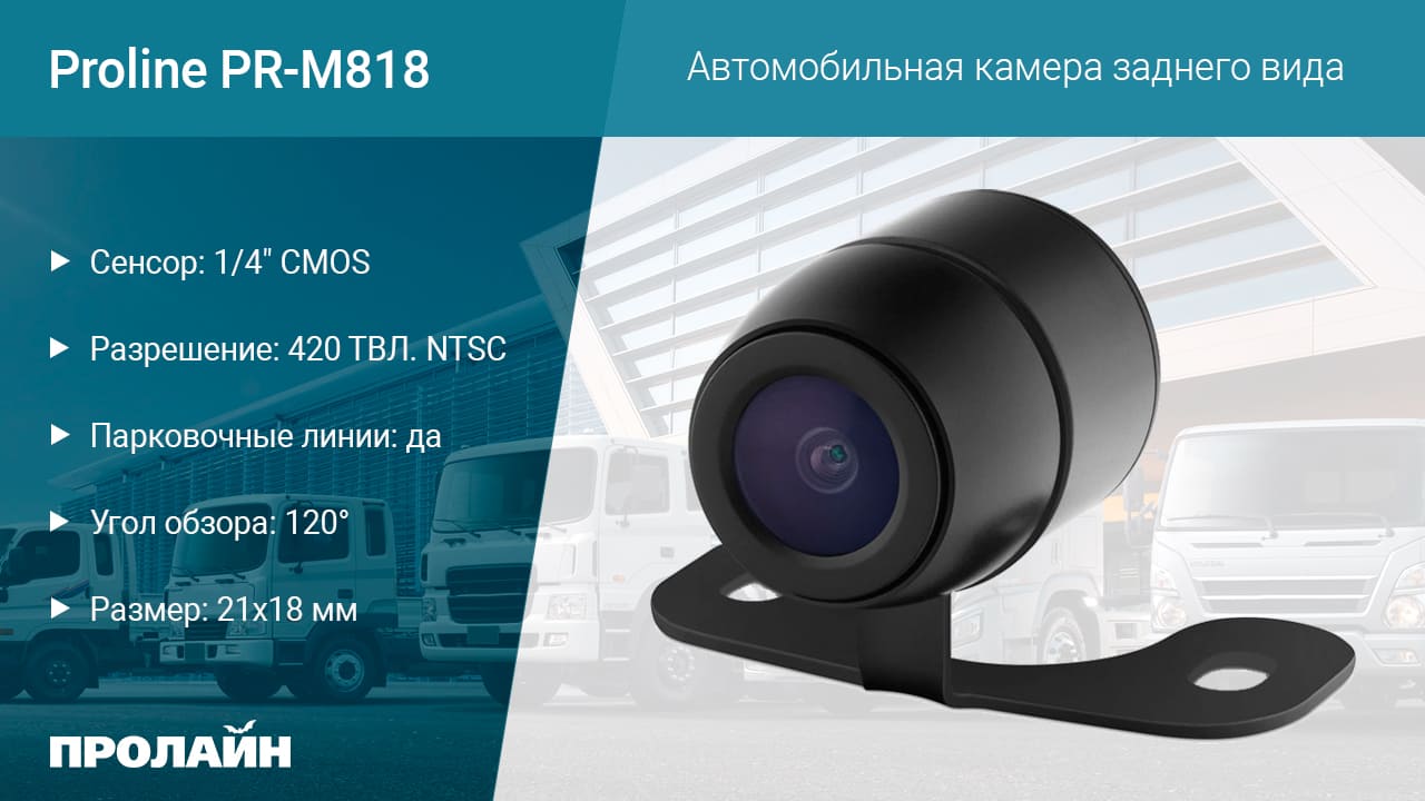 Proline PR-М818 – представляет собой автомобильную видеокамеру заднего вида, выполненную во влагозащищенном корпусе для использования в условиях низких температур и повышенной влажности. Благодаря широкому диапазону рабочих температур от -30 до +80 градусов и классу защиты IP67 (полная защита от пыли и водяных струй), камера способна функционировать за бортом автомобиля. Высококачественная цветная автомобильная видеокамера, делающей изображение насыщенным, стабильным и качественным. Камера компактна и легко устанавливается на любую ровную поверхность, за счет специальной балки крепления, вы можете задать нужный угол обзора и зафиксировать камеру, подтянув болты. Данная камера является самым лучшим выбором для установки в общественном транспорте или в коммерческом транспорте, в местах где необходимо вести мониторинг автомобильного движения и наблюдать за правомерностью действий пассажиров.