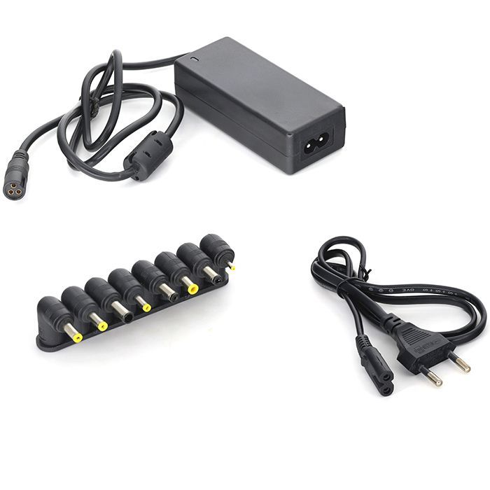 Универсальный адаптер питания для ноутбука с выходными напряжениями в диапазоне от 9.5 до 20 Вольт. Мощность питаемой нагрузки до 40 Ватт. В комплекте 8 сменных насадок различного диаметра для разных моделей ноутбуков и других портативных устройств.