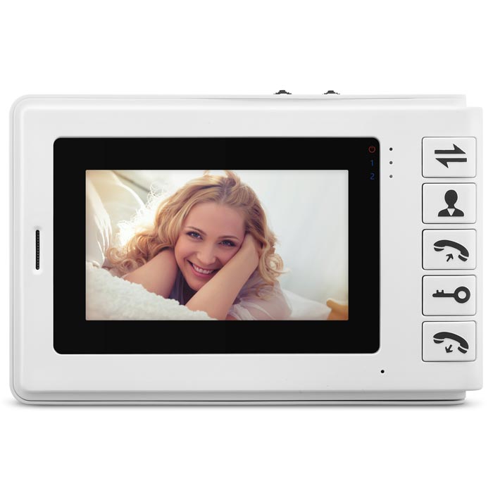 Домофон идеально подходит для размещения в квартире или в загородном доме. С его помощью можно видеть гостя (требуется вызывная панель, в комплект не входит), открывать дверь, общаться по двусторонней связи. Устройство работает с изображениями в формате JPEG. Домофон поддерживает подключение до 2-х вызывных панелей и 4-х мониторов. Монтаж домофона осуществляется накладным способом при помощи входящего в комплект кронштейна.