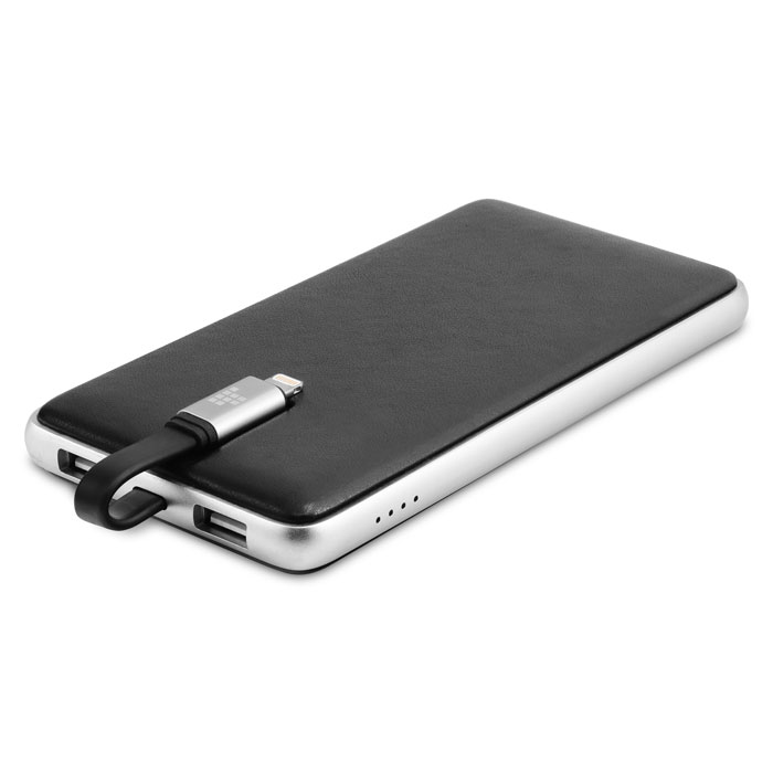 Внешний аккумулятор выделяется презентабельным видом. При его отделке использована кожа и алюминий. Емкость составляет 10000 мАч, в то время как стандартная батарея смартфона имеет объём в 2.5 - 3 раза меньше. В дороге или длинной поездке свое применение он обязательно найдёт. Заряжать можно любые гаджеты, а для устройств от Apple имеется небольшой кабель с разъёмом Lightning, не нужно брать дополнительные провода. Для разъёма предусмотрена ложбинка с магнитным основанием. Кожаное покрытие приятно лежит в руке и создаёт ощущение премиального устройства.