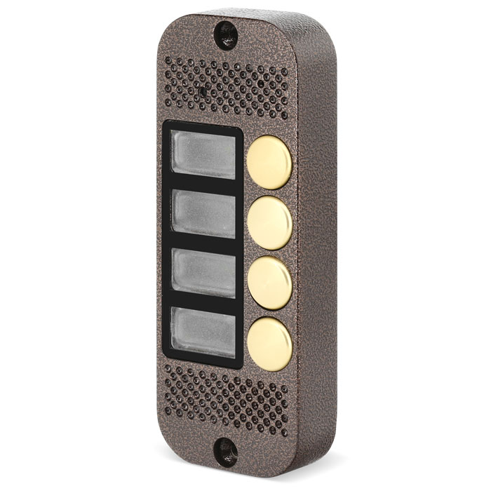 ИК-подсветка панели позволяет передавать полноценное монохромное изображение без дополнительного освещения на расстоянии до 1 метра. Все настройки панели произведены на стадии сборки, что облегчает монтаж и эксплуатацию прибора. Сигнал передается по четырехпроводному кабелю до каждого абонента, а экранирование на расстояниях до 30 метров не требуется. Полудуплексная система передачи сигнала обеспечивает устойчивую связь между абонентом и посетителем. Корпус панели снабжен 4-кнопками вызова и подсвечиваемыми информативными табличками. Вызывная панель JSB-V084 отлично подходит для контроля доступа в жилые многоквартирные дома, на этажные тамбуры, загородные дачи и в небольшие офисные центры.